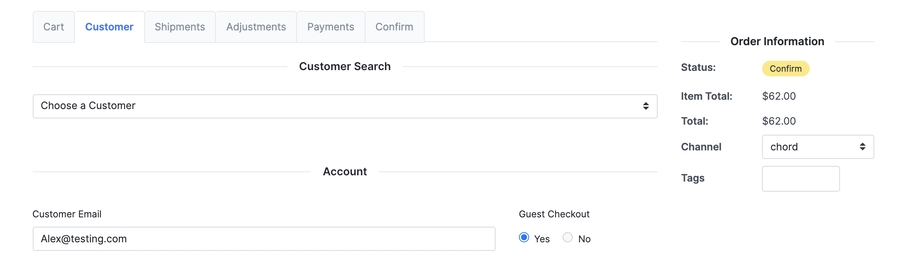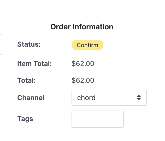 Login to Chord OMS: The Orders section Chord OMS starts tracking orders even before they are placed: as soon as a customer has put something in their cart, a new order is generated. The Status will be Cart but more on that later
